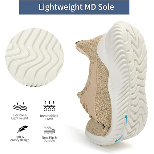 Walking Shoes for Men Sneakers – Slip on Memory Foam Running Tennis Shoes for Athletic Workout Gym Indoor Outdoor Lightweight Breathable Casual Sneakers Khaki