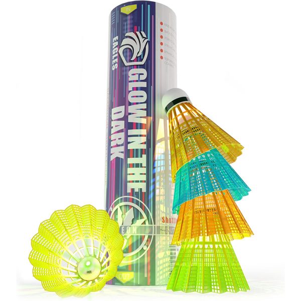 Badminton Shuttlecocks – 5 Pack Lighting Birdies, Nylon Glow in The Dark Birdie Balls for Baseball Practice- Plastic Light Up Birdies for Outdoor Indoor Sports Activities